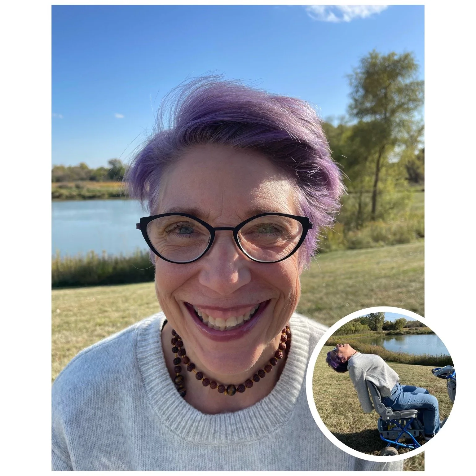I Identifiy as a spiritual being incarnate in a body that is racialized, sexualized, and parsed into many other categories by the culture I live in. I reject this deconstruction while at the same time I accept that such categorization is the current norm. I am descended from peoples who lived in the western part of the landmass of Asia that we call Europe. Historically colder and darker than some other continental areas, European heritage affects the melanin and other biomolecules in my body and consequently my skin is of a relatively light hue, my hair texture is smooth, my hair color is relatively light (although I dye it purple), and, for better or worse, I am accumulating abundant wrinkles and sagging skin as I age. Society racializes me as white. In cultural terms, my body is considered chronically ill and disabled. In functional terms, my body is my teacher and my heroine, providing my spirit and soul a beautiful and vibrant home in this relative world and inviting me into the present moment with every breath.